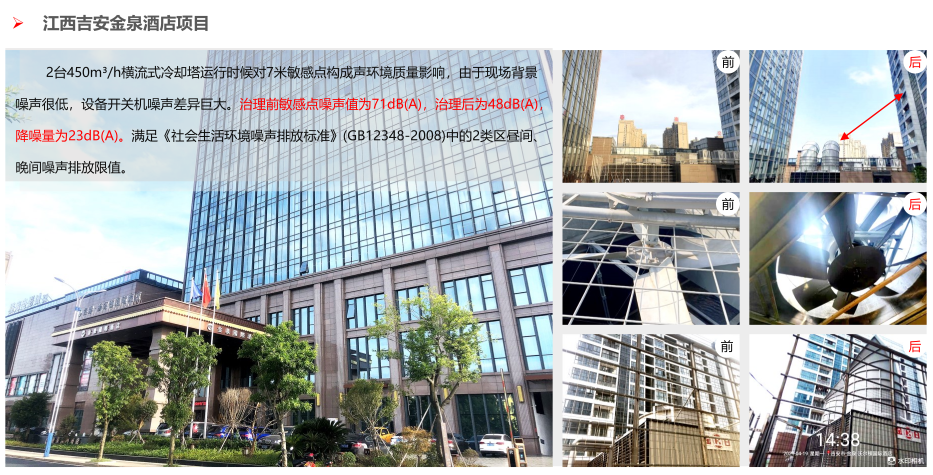 當前位置:特菱首頁 > 冷卻塔降噪 > 冷卻塔降噪案例 > 江西吉安金泉酒店項目